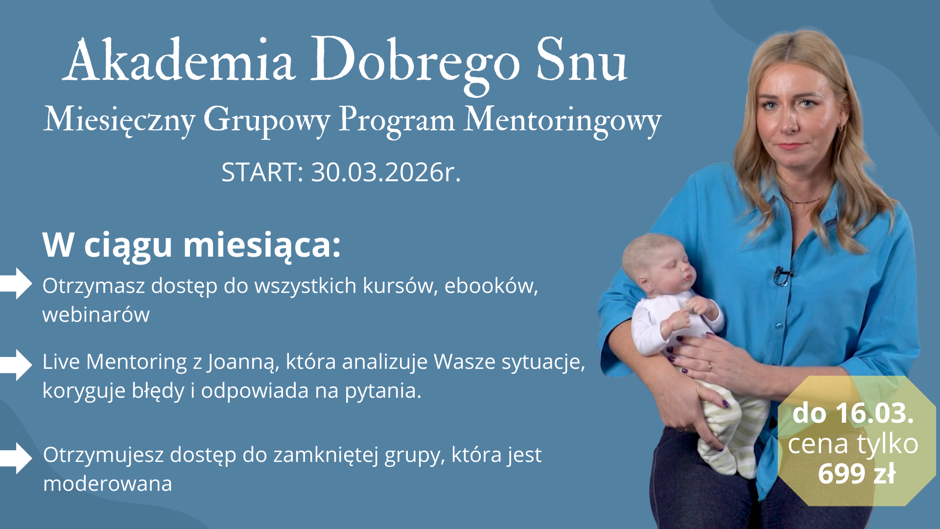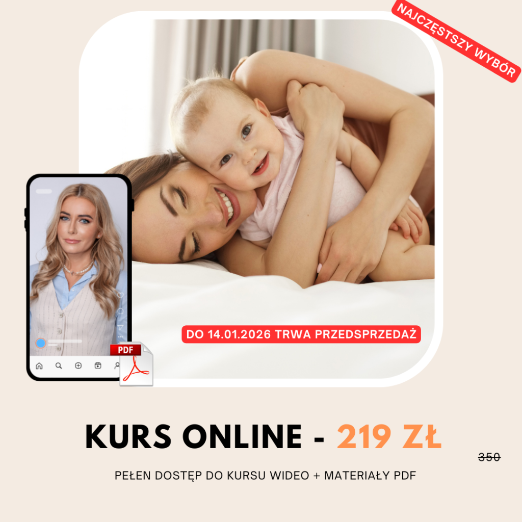 Kurs online „Dobry sen Twojego dziecka” pomoże Ci nauczyć maluszka spokojnie zasypiać bez płaczu, pobudek i chaosu. Łagodna, skuteczna metoda oparta na psychologii i praktyce z setkami rodzin